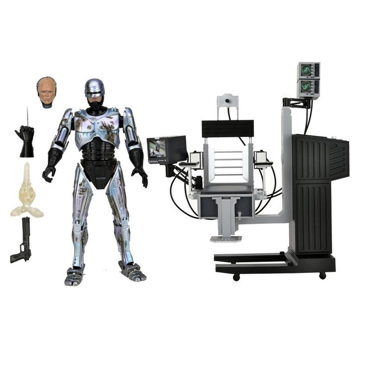 ه مناسبت سی و پنجمین سالگرد فیلم کلاسیک RoboCop شرکت neca به بازسازی اکشن فیگور دمیج خورده روبوکاپ با جزییات فوق العاده و ظرافت بسیار زیاد پرداخته است. فیگور 7 اینچی Ultimate Battle Damaged RoboCop را در صندلی بنشانید و به کمک مفاصل متحرک حالت اکشن فیگورتان را تغییر دهید و لذت ببرید. ارتفاع صندلی بیش از 8 اینچ، عرض بیش از 7 اینچ است و صندلی دارای مفصل چرخان است. RoboCop با لوازم جانبی بیشتری عرضه شده است: مشت نیزه دار قابل تعویض، تفنگ Auto-9، کلاهخود قابل اتصال با جلوه ای آسیب دیده از انفجار، و یک سر قابل تعویض اضافی شبیه به پیتر ولر (بازیگر روبوکاپ) که دارای جزییات دقیق و چاپ دیجیتال ارتقا یافته است.