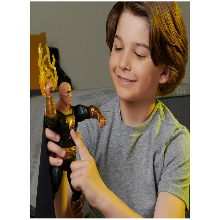 بلک آدام متفاوتترین و قویترین فیگوری که میتونید داشته باشید! با گرفتن بلک آدام در دست قدرت بسیار زیادی رو در اختیار داشته باشید و با دشمنان و نیروهای تاریک مبارزه کنید. این فیگور با جزئیات دقیق، کاملاً مشابه نمونهی واقعی در فیلم طراحی شده تا بازی رو برای شما هیجانانگیزتر کنه. همراه این شخصیت 2 تا اکسسوری رعد و برق و مشت آتشین هم هست که میتونید اونها رو به دستش وصل کرده تا هنگام ضربه زدن قدرت واقعی اون رو حس کنید. برای مشت زدن کافیه که پای سمت چپ رو به سمت داخل فشار بدید و ببینید چجوری قدرت قهرمانانهی خودش رو نشون میده. تازه شما میتونید با فشار دادن سینهی فیگور صداها و عبارتهای مختلفی رو از این کاراکتر بشنوید و صحنههای فیلم رو برای خودتون بازسازی کنید.