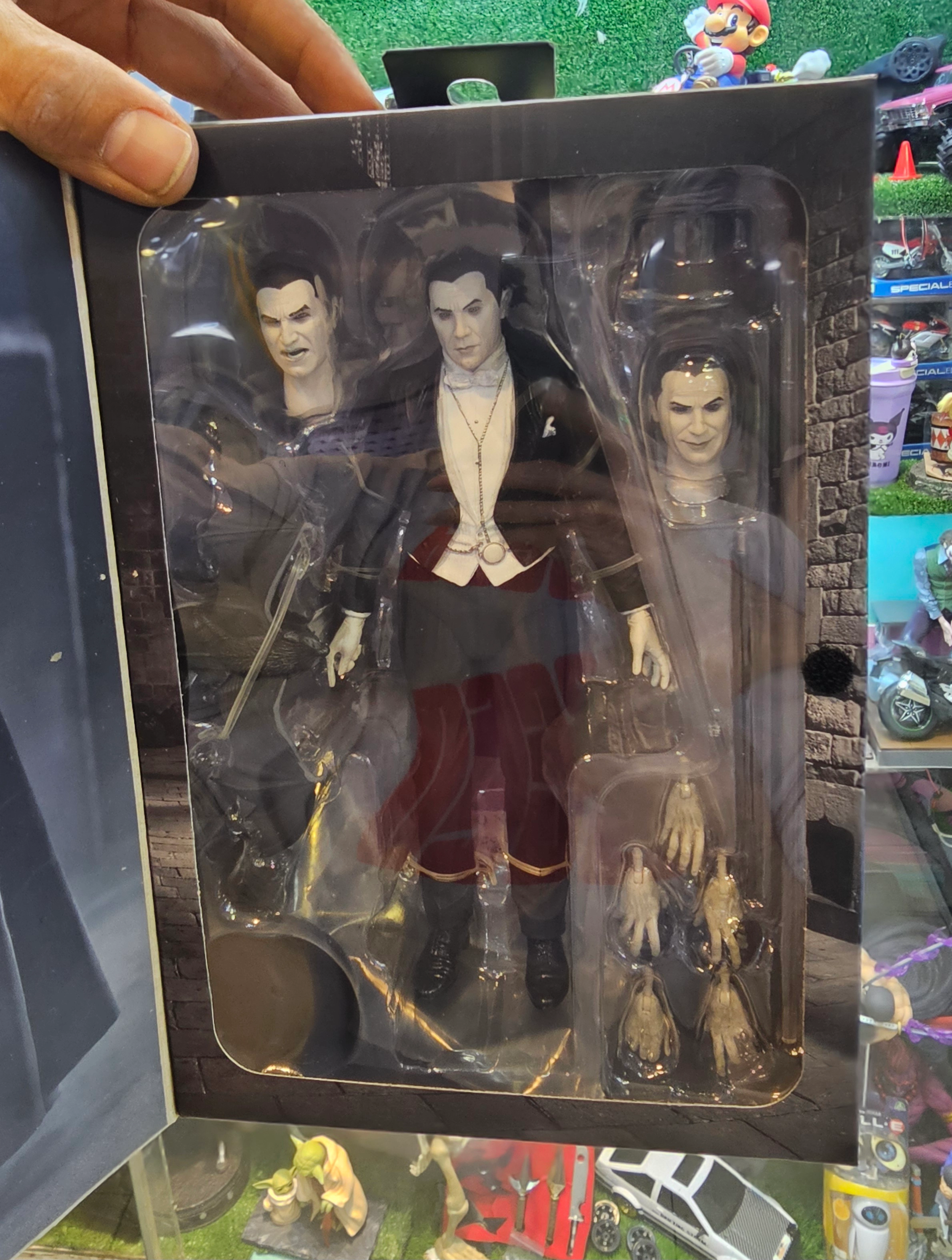 برای جشن گرفتن نودمین سالگرد نمایش کلاسیک تحسینشده یونیورسال هیولاها، NECA یک اکشن فیگور از معروفترین خونآشامها را معرفی میکند... دراکولا! ما از نزدیک با املاک Bela Lugosi کار کردیم تا شباهت بیان بازیگر را در سه مجسمه مختلف از سر، و برای جزئیات بیشتر پسزمینه در عناصر مهم لباس به تصویر بکشیم. در مقیاس 7 اینچی، اکشن فیگور Ultimate Dracula (ترانسیلوانیا) دارای شنل کالاهای نرم است و در بسته بندی سالگرد ممتاز با لوازم جانبی فراوان ارائه می شود: 3 سر قابل تعویض، دست های قابل تعویض، خفاش بزرگ، بطری شراب، جام، شمعدان و بشقاب سرو.