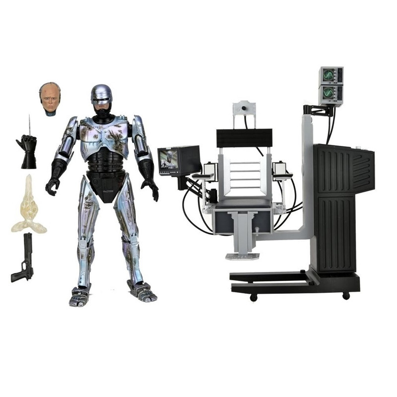 به مناسبت سی و پنجمین سالگرد فیلم کلاسیک RoboCop شرکت neca به بازسازی اکشن فیگور دمیج خورده روبوکاپ با جزییات فوق العاده و ظرافت بسیار زیاد پرداخته است. فیگور 7 اینچی Ultimate Battle Damaged RoboCop را در صندلی بنشانید و به کمک مفاصل متحرک حالت اکشن فیگورتان را تغییر دهید و لذت ببرید. ارتفاع صندلی بیش از 8 اینچ، عرض بیش از 7 اینچ است و صندلی دارای مفصل چرخان است. RoboCop با لوازم جانبی بیشتری عرضه شده است: مشت نیزه دار قابل تعویض، تفنگ Auto-9، کلاهخود قابل اتصال با جلوه ای آسیب دیده از انفجار، و یک سر قابل تعویض اضافی شبیه به پیتر ولر (بازیگر روبوکاپ) که دارای جزییات دقیق و چاپ دیجیتال ارتقا یافته است.