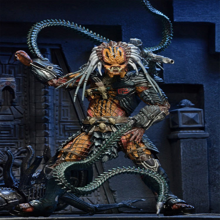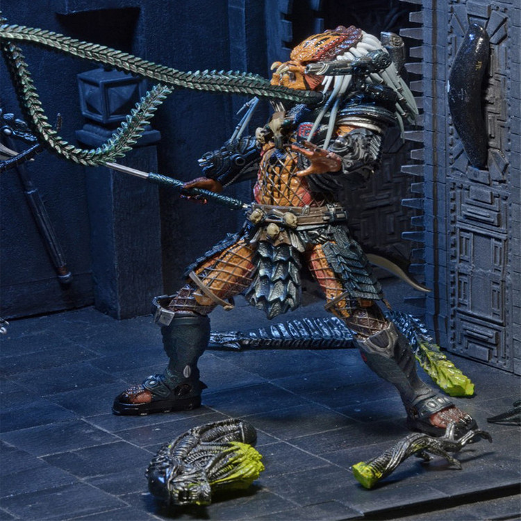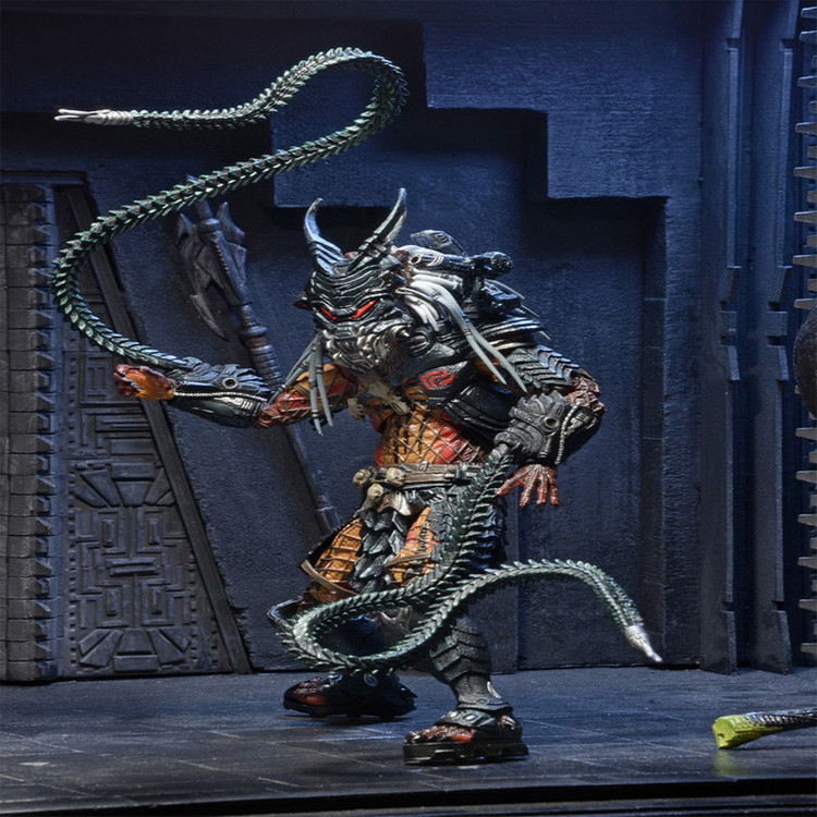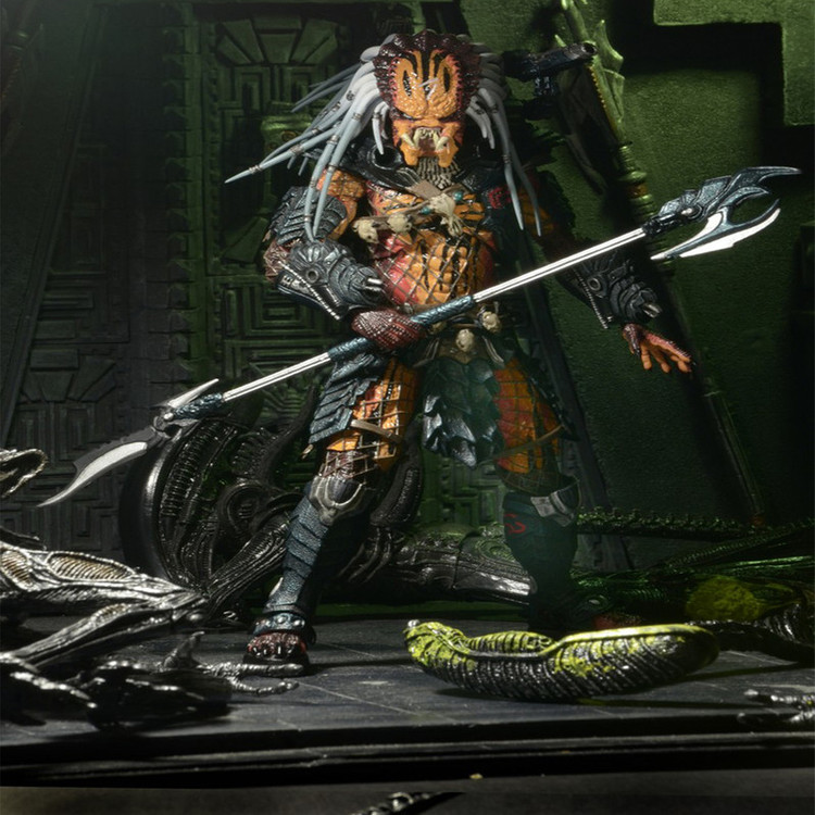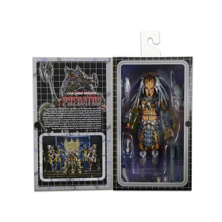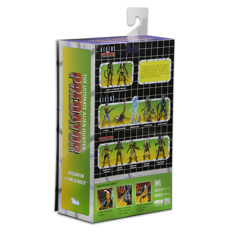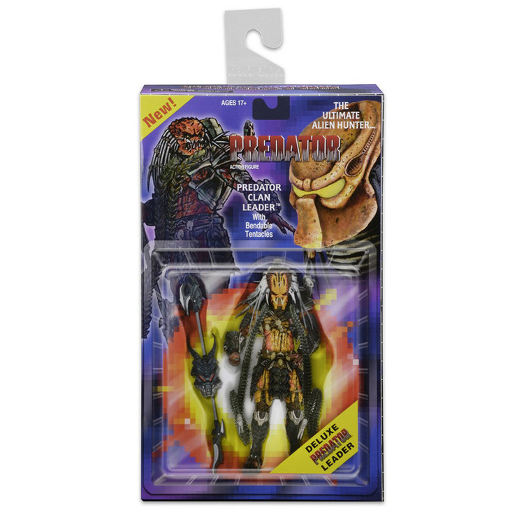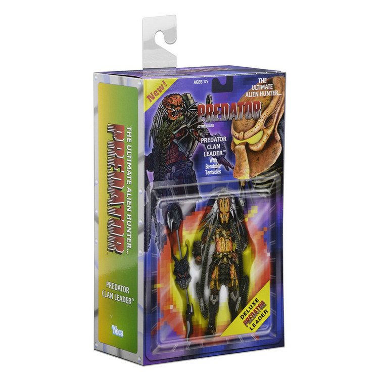 جدیدترین اکشن فیگور Predator Deluxe ما ادای احترامی است به چهره ای که همچنین یک نسخه لوکس در خط کلاسیک Kenner Expanded Universe بود: Clan Leader! تیم ما با الهام از طراحی های دهه 1990، از مجسمه سازی، جزئیات و بیان مدرن استفاده کرده است تا این شکارچی قدیمی را وارد هزاره جدید کند و در نتیجه پیچیده ترین شکل شکارچی ما را به وجود آورد. و با قد 8.5 اینچی، او همچنین بزرگترین چهره در خط Predator در مقیاس 7 اینچی تا به امروز است – حتی از اکشن فیگور قبلی Bad Blood Deluxe. Clan Leader دارای بیش از 30 نقطه اتصال است و دارای شاخک های قابل خم شدن فوق العاده ای است که می تواند به شانه ها یا مچ دست او متصل شود، به علاوه یک کلاه ایمنی قابل جابجایی و یک چوب منحصر به فرد. بستهبندی کارتهای بلیستر Deluxe نیز نشانهای از خط کلاسیک است، که دارای تصاویر سفارشی و پالت رنگی است که به قفسههای اسباببازی اوایل دهه 90 متصل میشود.